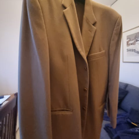 koon 44 pikkutakki (S), villa-kashmir, 165-170 pitkälle hoikalle sopiva. Käytetty, jäänyt pieneksi. Pientä kulumaa kainaloissa (kuva4), muuten mainiossa kunnossa.