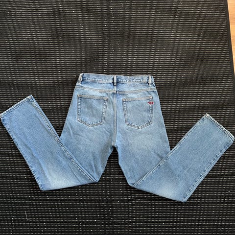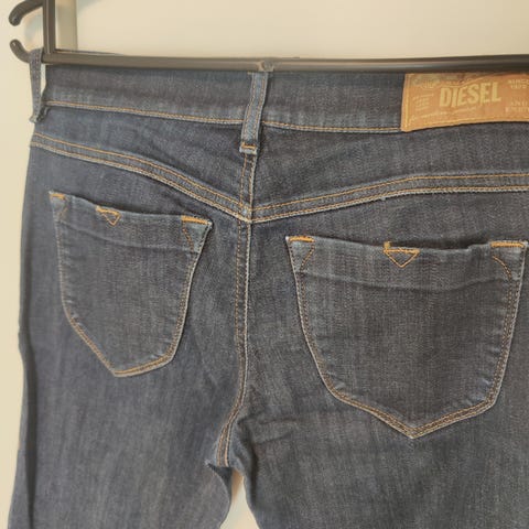 Miesten Diesel Industry-farkut. Koko 29". Vy 77 cm. Vyötäröltä lahkeen suuhun 102 cm. Lahkeen leveys 44 cm. Lahkeiden suussa pientä kulumaa. Postitus tai nouto.