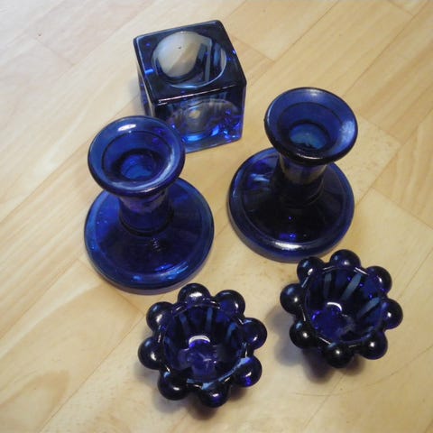 4 kpl Lumme kynttilänjalkoja, suunnittelija Kerttu Nurminen, Nuutajärvi.