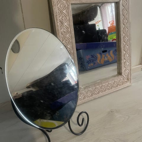 Hyväkuntoinen peilin koristeellinen, massiivinen, valkoinen kokonain Peili K117 L86, Peili K88 L58