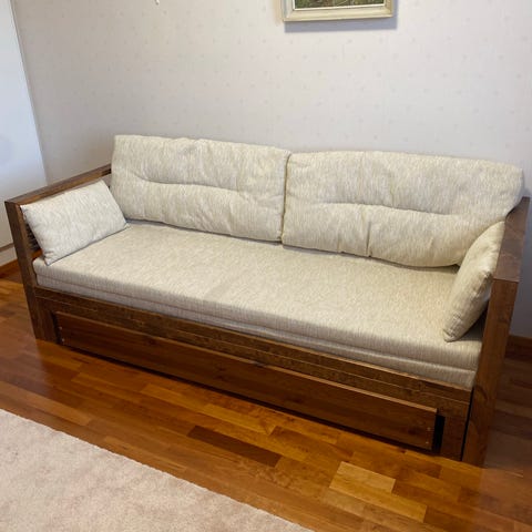 Sami on tukevarkenteinen sohva ja se soveltuu hyvin sohvaksi ja vuoteeksi mökille tai varavuoteeksi kotiin!