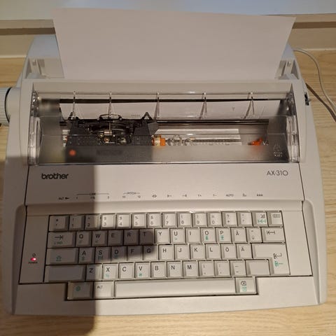 Siisti kirjoituskone kantolaukussa 70-luvulta. Kone on muuten toimiva, mutta vaatii värinauha vaihdon.