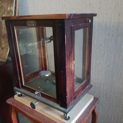 Tämä vanha, kookas ja hienosti säilynyt apteekkivaaka on osa apteekkihistoriaa ja sitä on käytetty entisaikaan tarkkojen lääkeannosten punnitsemiseen. Vaaka on ympäriinsä tarkastusleimoja, jotka alkavat jo 1920-luvulta. Mukana on säilynyt painorasia, joista lähes kaikki painot ovat säilyneet mukana. Todella upea esine kaikkinensa ja harvoin tarjolla tämän kuntoisena.