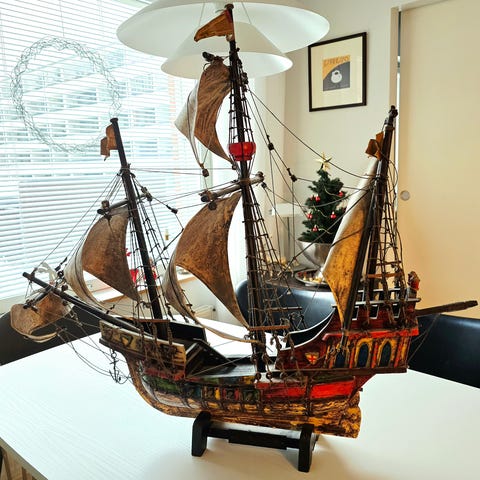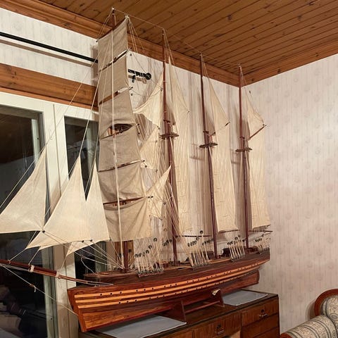 Huikaisevan hieno meriantiikin kohde. Tämä yksi tunnetuimmista purjealuksen malleista on käsityönä tehty ja laivan yksityiskohdat ovat todella hienot. Kyseistä laivamallia löytyy ns. uutena varsin helpostikin, mutta aidosti vanhana ei niinkään helposti. Todellinen katseenvangitsija ja meriantiikin klassikko.