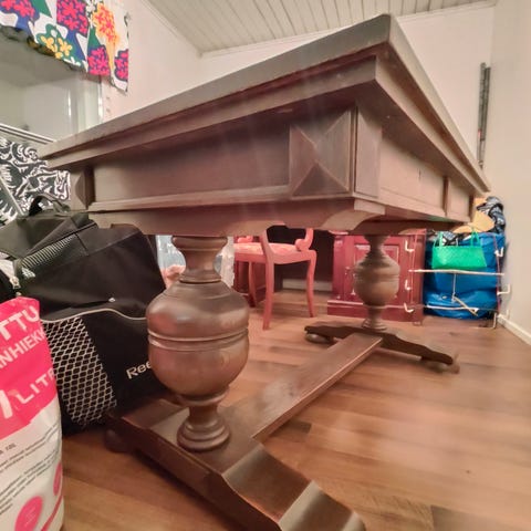 Myydään tarpeettomana pankkiirin työpiste. Nahkainen työtaso, alkuperäinen.