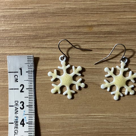 Uudet upeat glitter säihkyvät lumihiutalekorvakorut. Vihreät ja punaiset enää löytyy.
