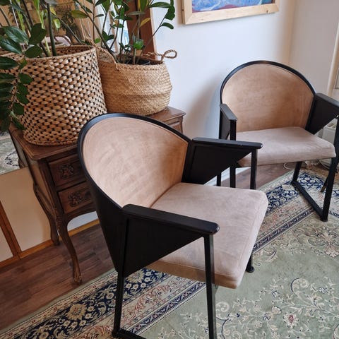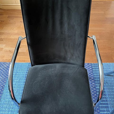 Hyväkuntoinen, kivan näköinen ja erikoinen suomalainen Innon design tuoli 1980-luvulta. Samaan kauppaan toinen samanlainen, selkänojasta viilua irti mutta ehjä muuten. Suunnittelija Jouko Järvensalo. Nouto Klaukkala. Maksu kät tai Mobilepay. Hinta yhteishinta kahdelle tuolille.
