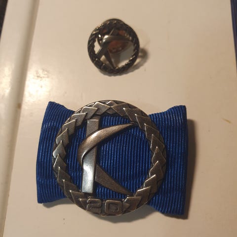 2 kpl hopeisia keskuskauppakamarin ansiomerkkejä (20 v). Leimat 830 Y7