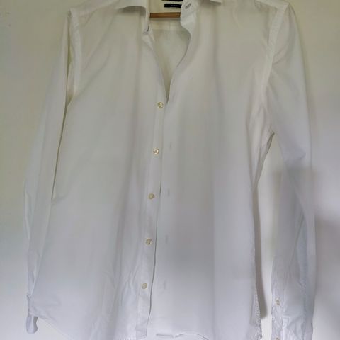 Muutaman kerran pidetty, pesussa rypistynyt hyväkuntoinen kauluspaita.