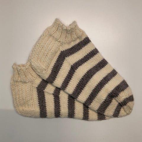 Ruskeat villasukat mintunvihreillä raidoilla. 75% villaa ja 25% polyamidia. Koko 38.