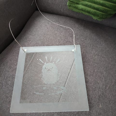 Tekstillä varustettu lasitaulu.