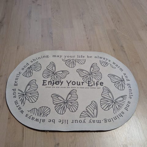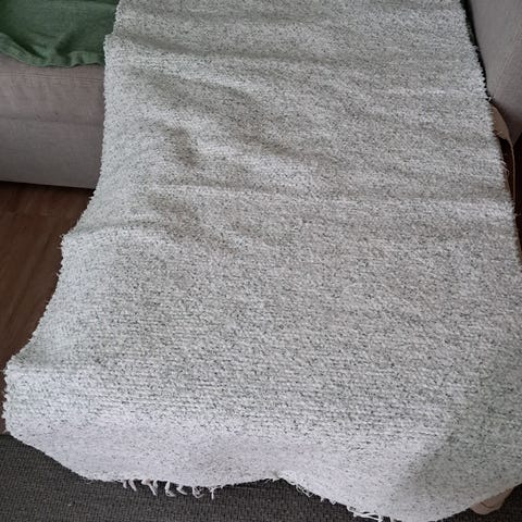 Muudään pieni matto & sisustustyynynpäällinen, matto puuvillaa, tyynynpäällinen pellavaa.