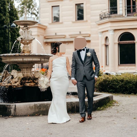 Lyhennetty sopimaan 165cm n. 5 cm korkojen kanssa ja lisätty taakse pieni nappi, johon helman voi nostaa tanssin ajaksi.