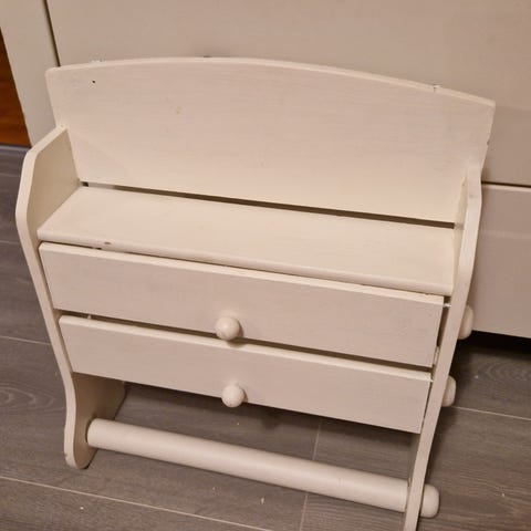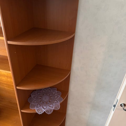 Hetken käytössä ollut kulmahylly, ruuveja saa mukaan.