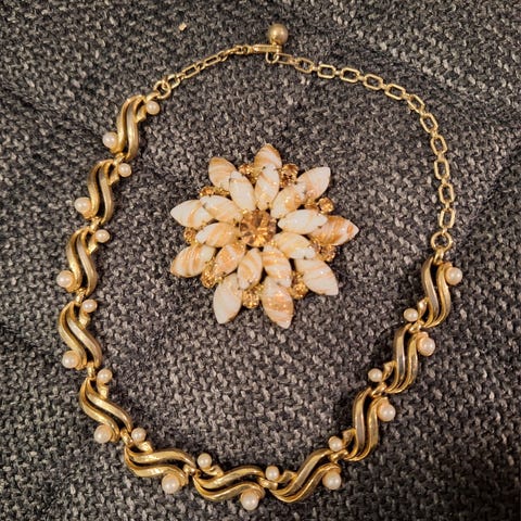 1960-luvun vintage-korusetti, kaulakoru ja rannerengas