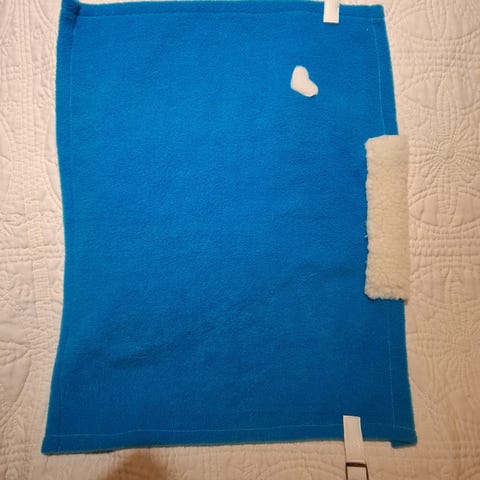 Loimi tarrakiinnityksellä. Värit: tummansininen, sininen ja vaaleanpunainen.