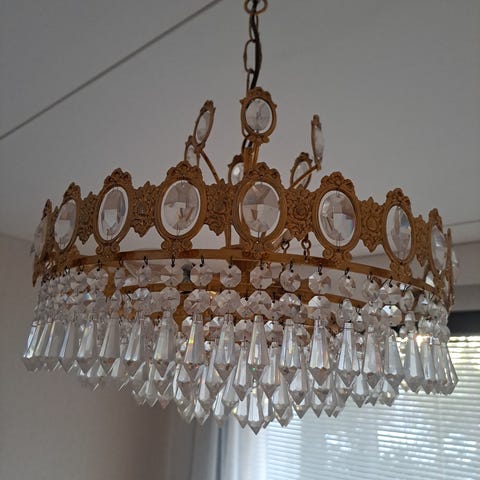 Kristalli kattokruunu neljällä lampulla.