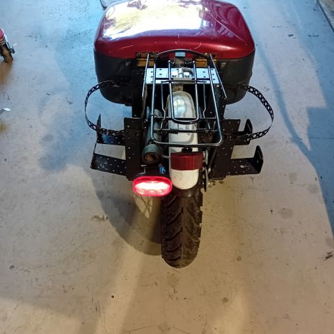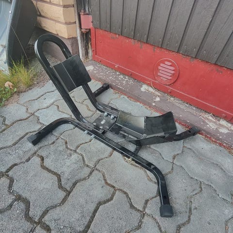 Moottoripyörän / mopon kuljetustuki peräkärryyn tai pakettiautoon. Tukeva rengastuki, kiinnitys pohjaan.