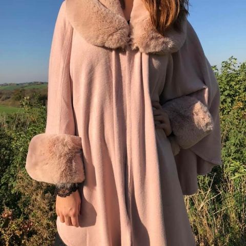Uusi yhden koon Rosenvinge poncho / shaaliponch, jossa on samanväriset tekoturkissomisteet pääntiessä sekä hihansuissa.