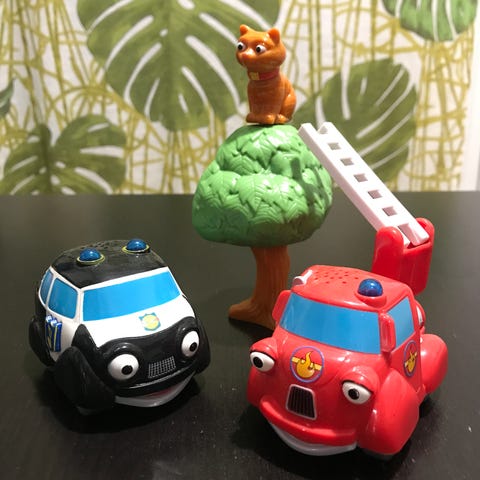 Robocar poliisi- ja paloauto, joitain pieniä osia puuttuu ja poliisin toinen käsi puuttuu. Muuten hyväkuntoiset ja kivat ajoneuvot vielä jollekin pienelle. Paloautossa vilkkuva valo.