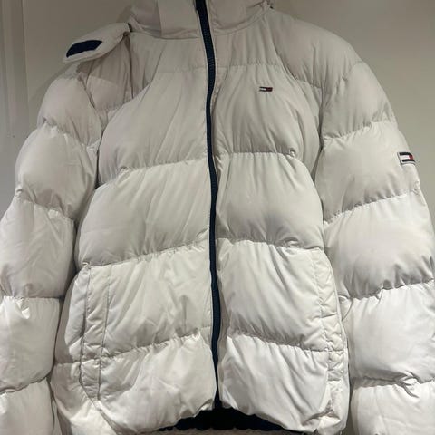 Erittäin hyväkuntoinen, täysin ehjä, musta, puolipitkä, hupullinen Tommy Hilfiger takki.