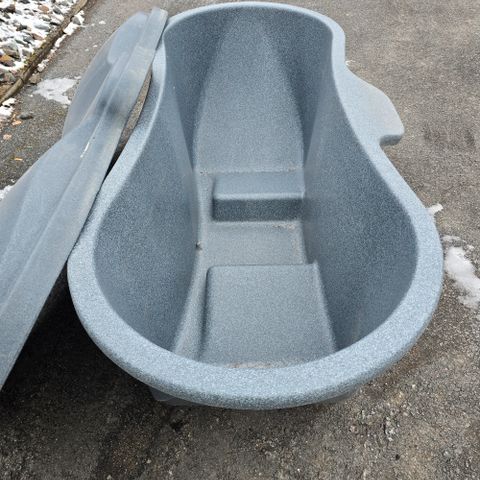 Muovi sisäosa materiaali rotaatiovalettu PE Muovi.Tilavuus 1400L.Muovi kansi sisältyy hintaan 650 EUR.Sisähalkaisia yläreunasta 1800.6-8 Henkilölle.