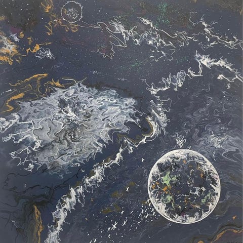 Taulu, itse maalattu akryylimaaleilla. Lähetys onnistuu.