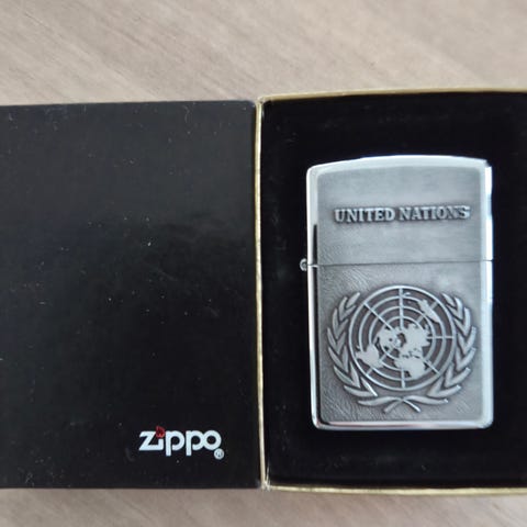 YK:n UNEF operaation Ruotsin kontingentin Zippo vuodelta 1978. Upea Keräilyzippo.