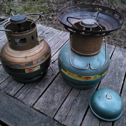 Ikään liittyvä käyttökulumaa, pullossa edelleen propaania ja testattu että toimii. Koristeeksi tai käyttöön.