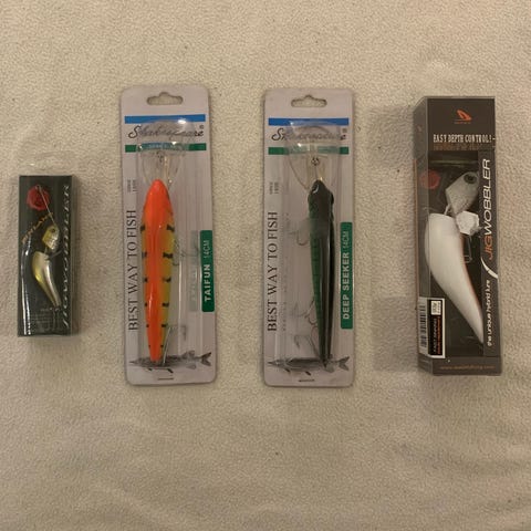 Jak, Abu Garcia Tormentor, Jigmaster jne. Kunto vaihtelee käyttämättömästä hyvään. Kuulilla varustettuja rattling-vaappuja useita.