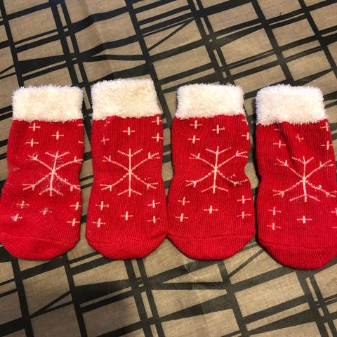 Ihanat sukat pienelle koiralle. Meidän pienelle Chihulle liian isot, sen takia myyntiin. Yksi pari sovitettu.