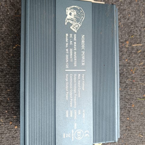 Täyssiniaalto invertteri, joka soveltuu kaikki laitteille, myös kaikelle elektroniikalle. Jatkuva teho 400W, hetkellinen 800W. Jännite tulo 12V, anto 230V. USB 5V 2,1A. Jännite-, kuumenemis-, napaisuus-, ja oikosulkusuojattu. Paino 1500g.