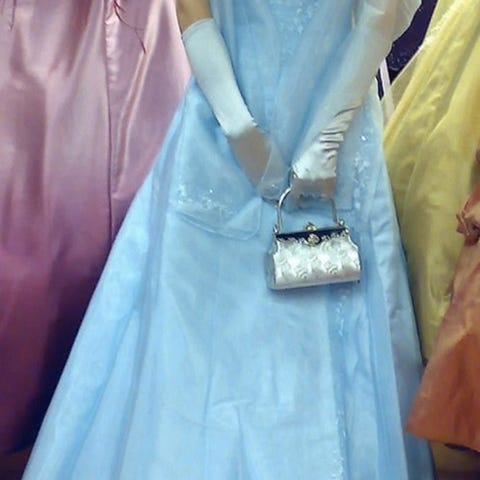 Kerran käytetty vaaleansininen vanhojentanssimekko