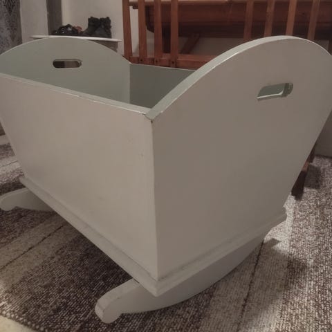 Männystä tehty vanha lasten kehto. Ollut ensin esikoisen käytössä ja sittemmin nukeilla. Sisämitat lev. 30cm pit. 75. Jykevä ja ei keikkaa ympäri