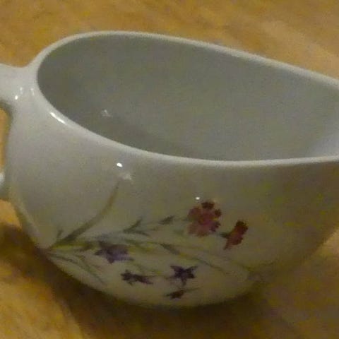 Arabia, kastikekannu, Pellervo. Design, Raija Uosikkinen. Korkeus 7,5 cm, leveys 14 cm x 11 cm, paino 363 g. 25€