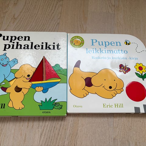 Pupen leikkimatto - kosketa ja kurkista -kirja (2015) 8e (3 kuvankaltaista leikkiaukeamaa)