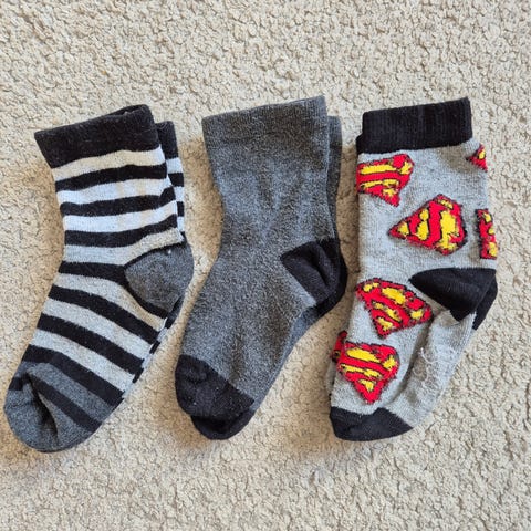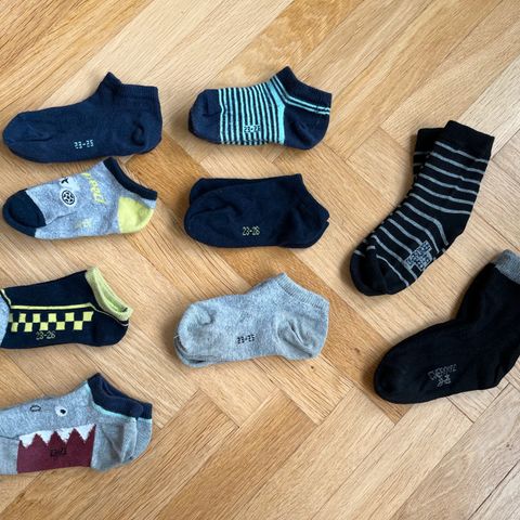 Yhdeksän koon 22/25-23/26 sukkia (kuvassa kahdeksan, mutta löytyi vielä pari batman sukkia). Erinomainen kunto! Pesty vain hajusteettomilla pesuaineilla, lemmikitön ja tuoksuton koti.