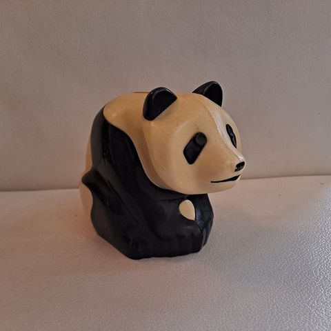 Panda säästöpossu, pohjareuna on hieman rikki, kuten kuvassa näkyy.