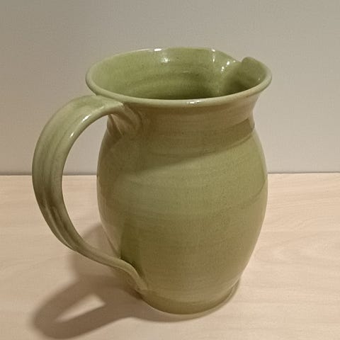 Käsin maalattu kreikkalainen savikannu, korkeus noin 27 cm.