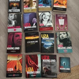 Kolme kirjaa: Liza Marklundin 'Rautaveri' ja 'Ajojahti', sekä 'Nobelin testamentti'. Kirjat ovat suomenkielisiä, pehmeäkantisia. Sopivat lukemiseen ja kirjallisuuskokoelmaan.