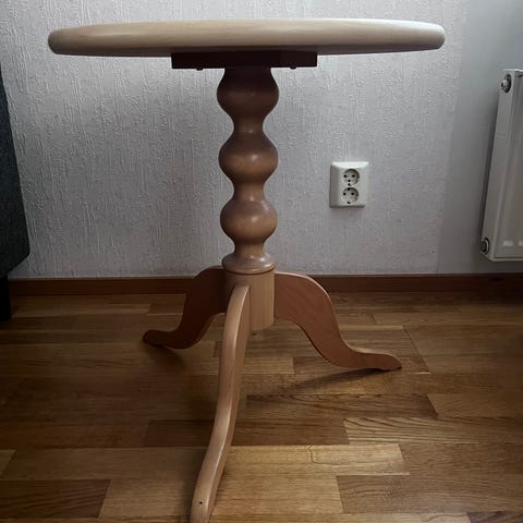 Pyöreä halkaisijaltaan 70cm puinen sohvapöytä. Pöydässä myös alatasolla.