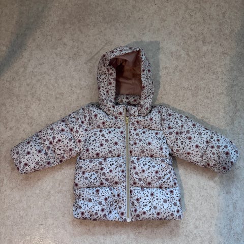 🌼 Ihana ja sievä violetti lasten toppatakki. Pitkän mallinen. Kaunis huppu.