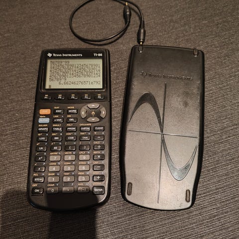 Lukiosta tuttu pätevä laskin Texas Instruments ti-86. Muuten toimiva peli mutta näytön vasemmassa reunassa pystyviiva jossa pixelit pimeänä hyvin usein, ei tietoa mistä johtuu.