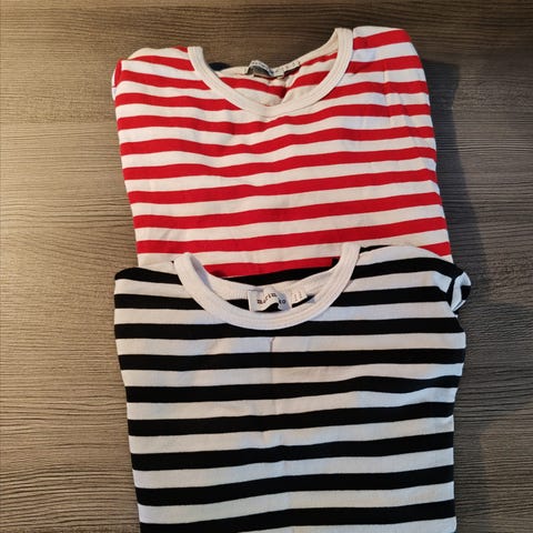 Uutta vastaava Marimekko pitkähiha - pitkähihainen puna-valkoraidallinen puuvillainen paita, koko xxs