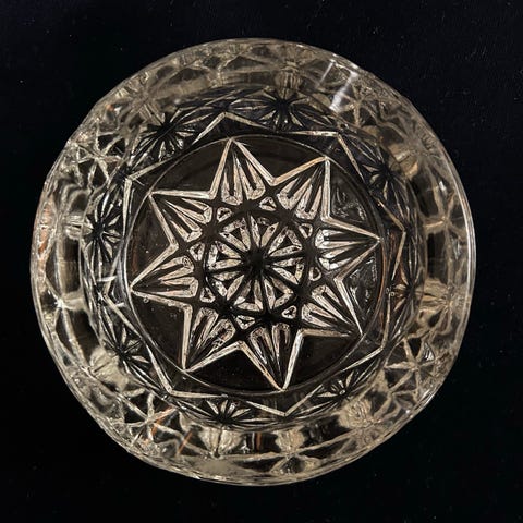 ERITTÄIN HARVINAINEN VIRHEETÖN!! Suuri lasitasku tai tuhkakuppi geometrisillä kuviolla.