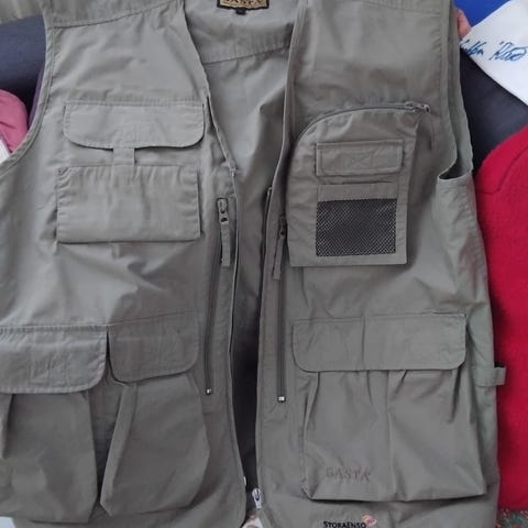 Myydään kuvien mukainen oliivinvihreä kalastusliivi. Koko on L ja merkki Jin Tao. Liivi on ehjä ja vetoketjut toimivat.