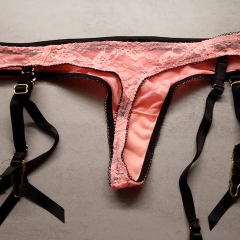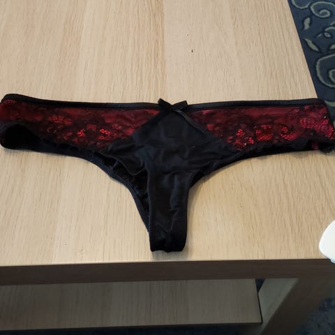 Punaiset stringit ruusun muodossa sydänboksissa.