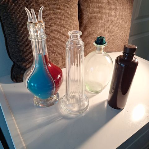 Erilaisia esiliinoja pullolle. Esimerkiksi mehupullolla estää tahmean mehun valumisen kaulaa pitkin, mutta käy myös viinipullolle. Sopii vaikka tuliaispullon kaveriksi. Hinta 3 euroa kappale.