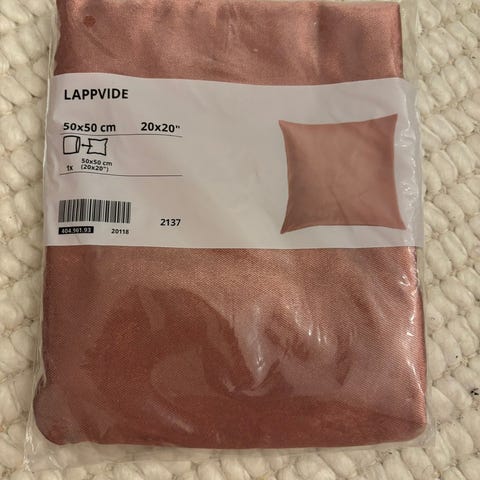 Avaamaton pakettti Ikean Åsveig koristetyynyn päällinen, rosa vakosametti, 100% puuvillaa, 50x50cm.