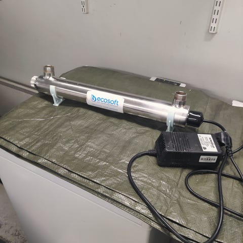 -Laitteisto tarvitsee 2 pistorasiaa (pumpulle ja UV-lampulle)